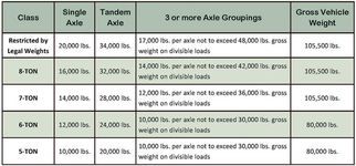 Also roads in residential subdivisions are restricted to 8 ton/axle (105,500 lbs max) when not under spring load restrictions.